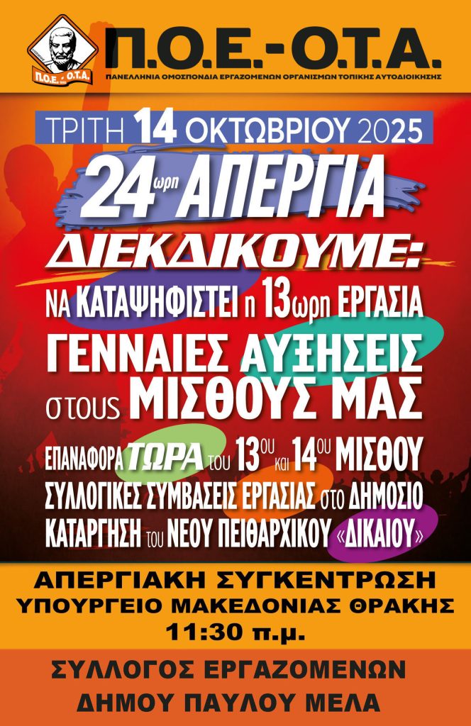 ΚΑΛΕΣΜΑ ΓΙΑ ΔΥΝΑΜΙΚΗ, ΕΝΩΤΙΚΗ ΚΑΙ ΜΑΖΙΚΗ ΣΥΜΜΕΤΟΧΗ ΣΤΗΝ ΑΠΕΡΓΙΑ